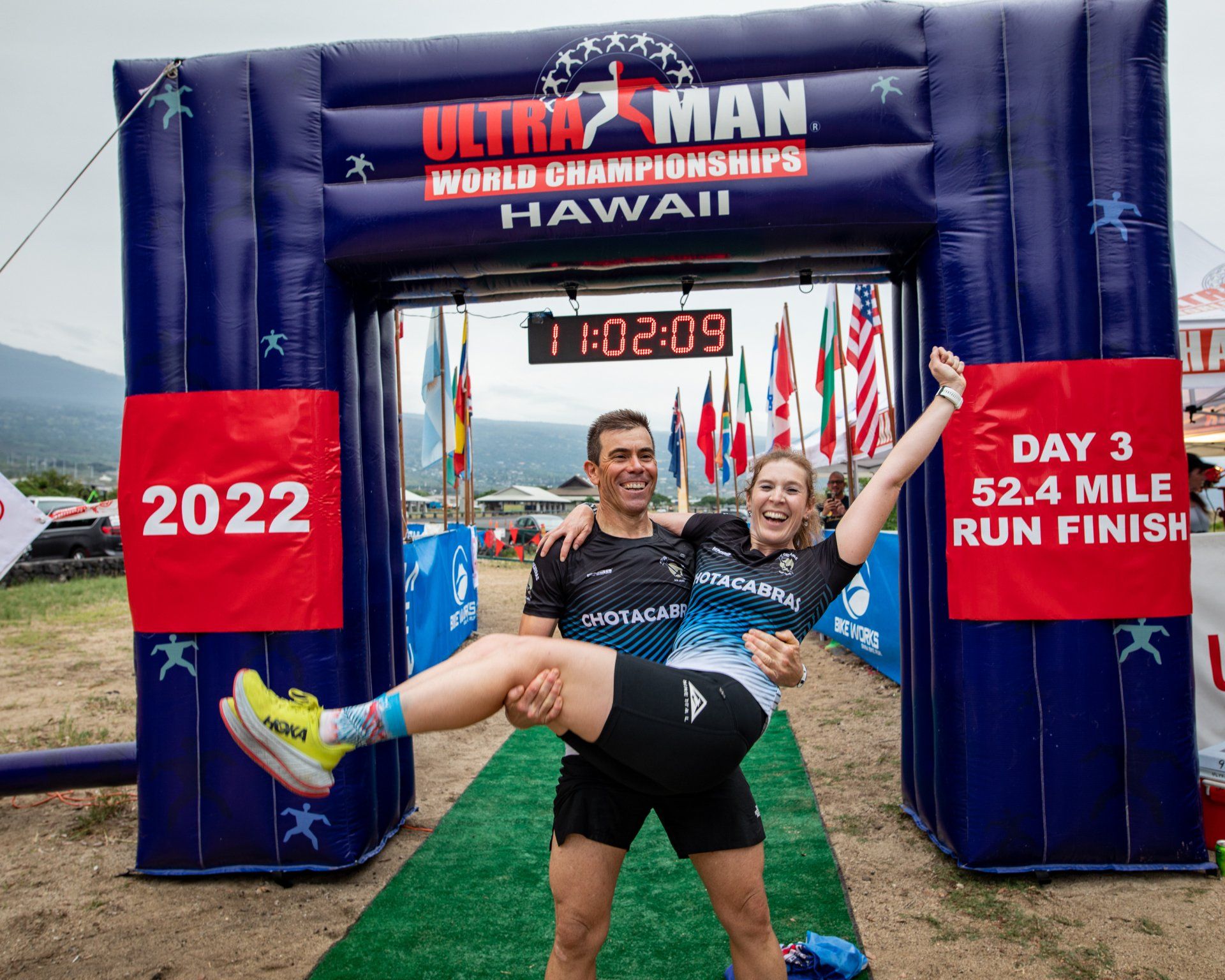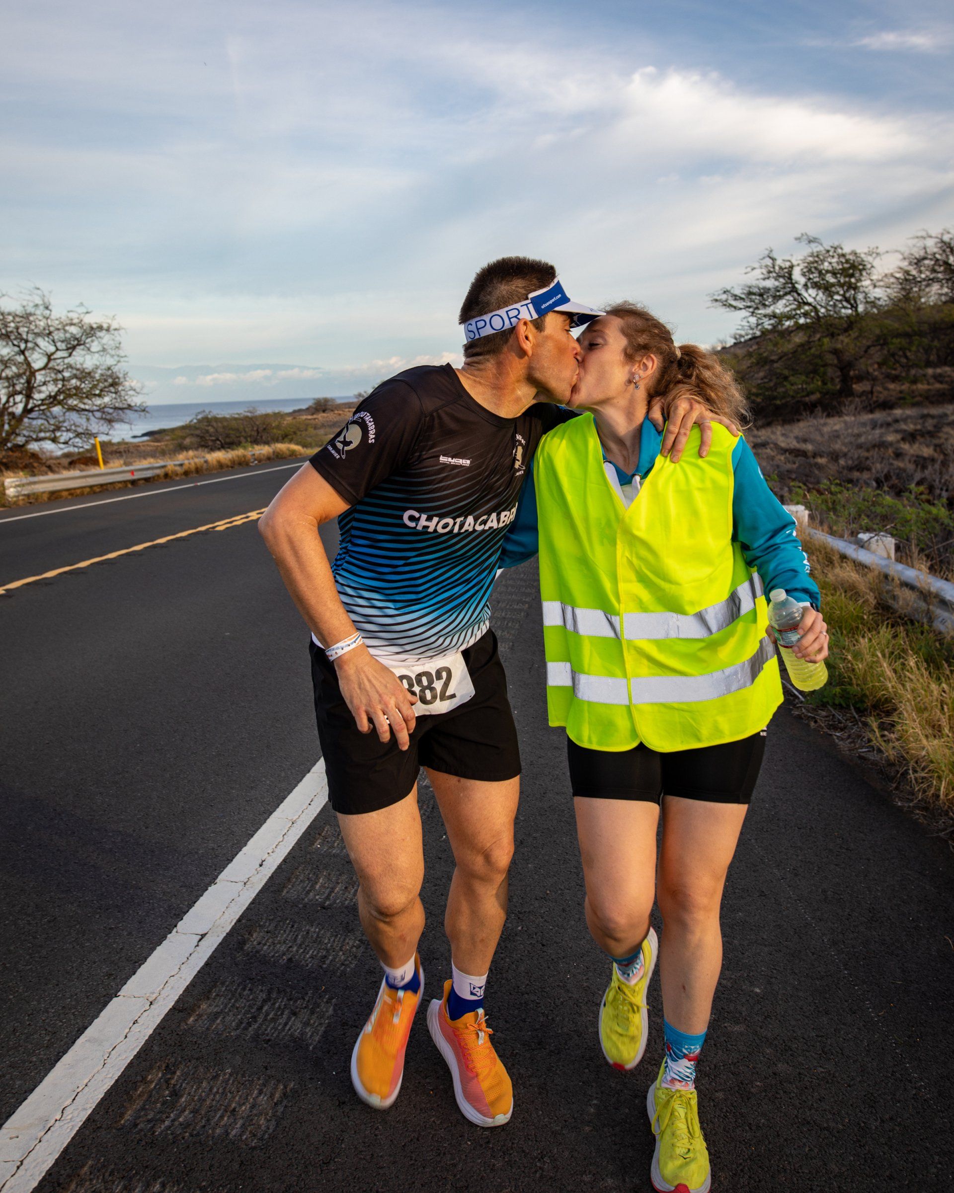 En noviembre 2021 (hace 1 año) me uní en matrimonio con Mary, después de 10 años de noviazgo, y decidimos embarcarnos juntos en el proyecto que acabamos de finalizar, ultra honey moon, que ha consistido en un viaje alrededor del mundo que nos ha llevado a subir volcanes de 6000 mts en el desierto de Atacama de chile (enero 22), donde conseguimos la cumbre del ojos del salado, 6.893 mts, y que es el volcán activo más alto del mundo, en marzo 22 viajamos a la ciudad de Fenix para intentar finalizar el ultraman de Arizona, y conseguir la clasificación para el campeonato del mundo que se celebra en Hawái cada año, aprovechamos para hacer diferentes rutas por el gran cañón, monument valley y hacer cumbre invernal en la montaña más alta de Arizona, el humphrey peak, 3.852 mts, conseguimos terminar y clasificarnos. En julio 22 viajamos a Pakistan para intentar 2 montañas de ocho mil metros, y conseguimos una de las 2, el k2, que es la segunda más alta del planeta con 8.611 mts. Y finalmente en noviembre viajamos a Hawái, donde acabamos de conseguir ser finisher de esta durísima prueba, especialmente dura la natación por las corrientes este año, para este proyecto de ultra honey moon decidimos contratar por primera vez a un entrenador personal, especialmente para evitar lesiones y tener continuidad, y de paso seguir aprendiendo.